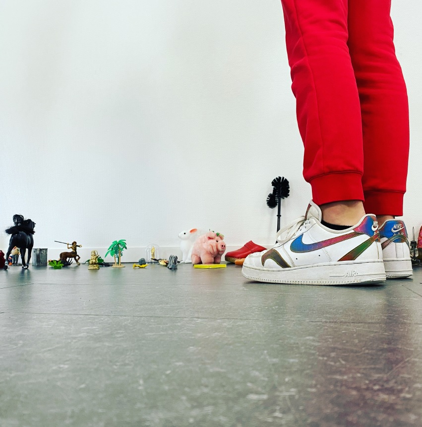 L’objet peut porter plusieurs sens et nous permet d’écrire ou au moins de construire une dramaturgie. Pour ce spectacle, les jouets sont privilégiés car nous avons deux frères qui puisent dans leur enfance pour s’exprimer. Leur imaginaire se construit avec des objets issus de la société de consommation.